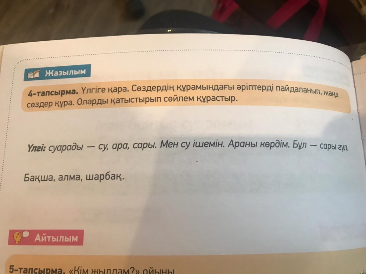 Шарбак-шар,бак,арба. Айгул турлi тустi шар сатып алды. Атам бакта жумыс iстеп жатыр.Биз арбаны кордiк.