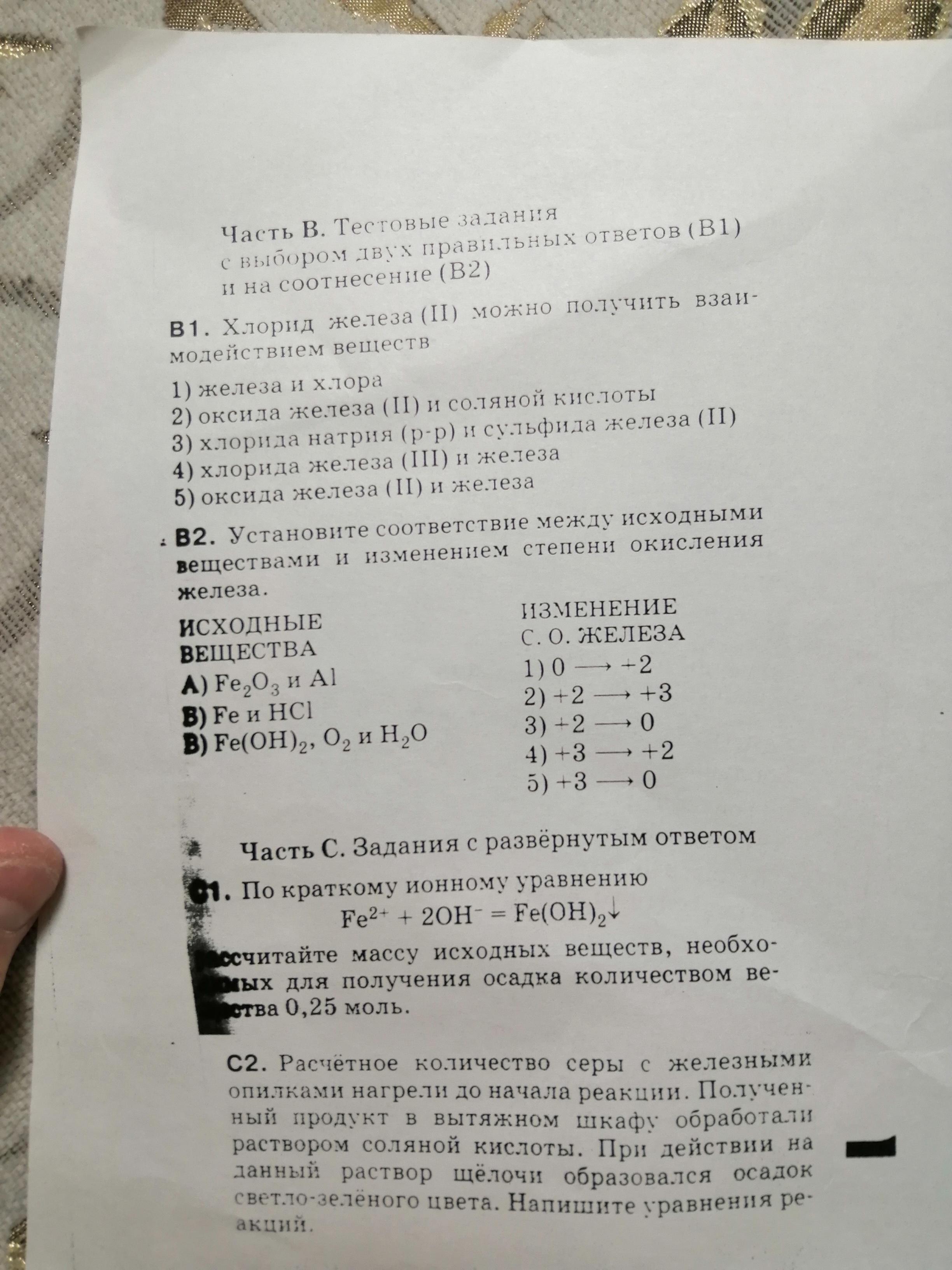 С1. FeCl2+2NaOH=Fe(OH)2+2NaCl