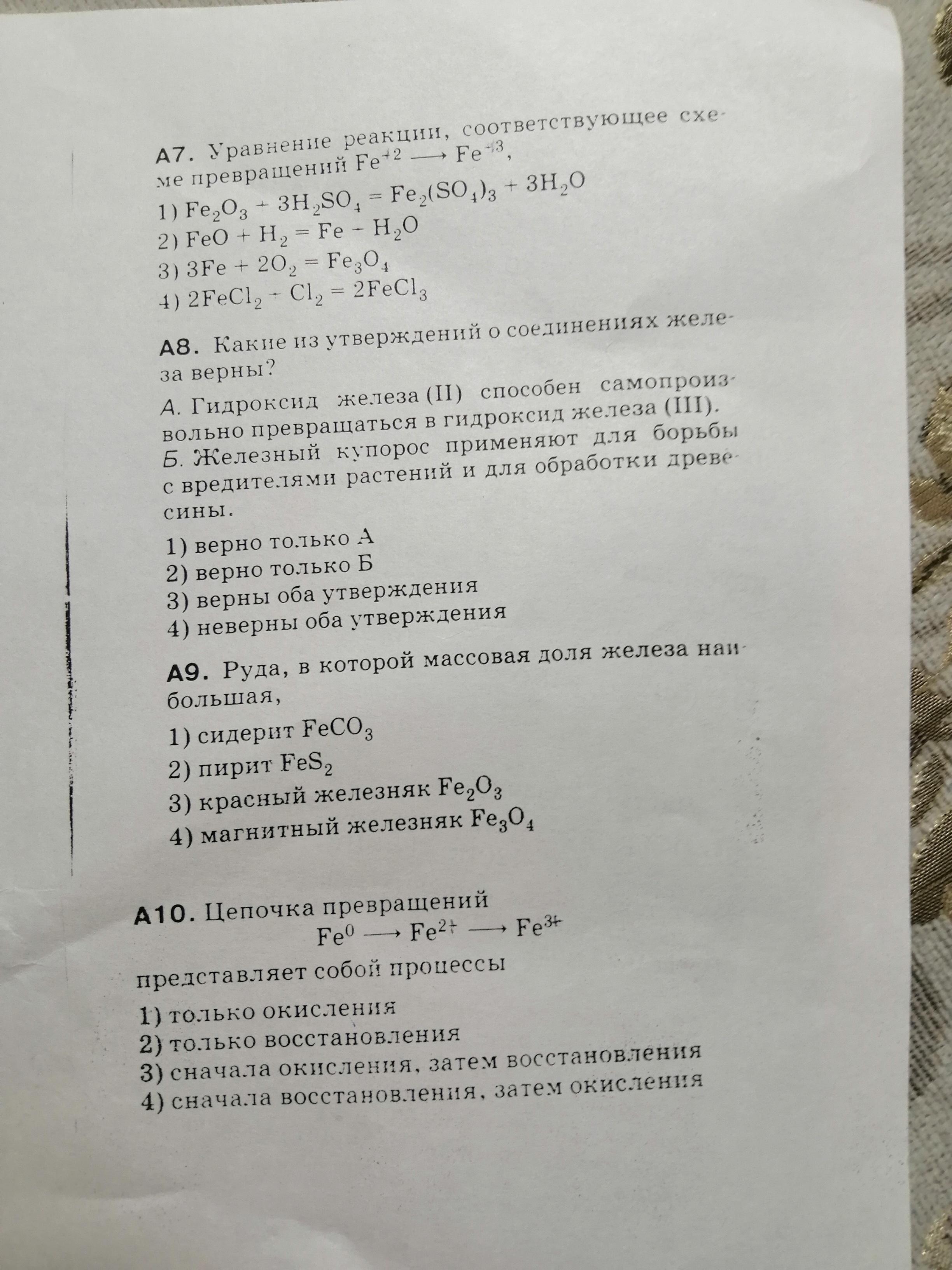 Помогите решить тест по химии 9 класса. Тема: Свойства металлов. Когда проходили эту тему, я был в больнице.