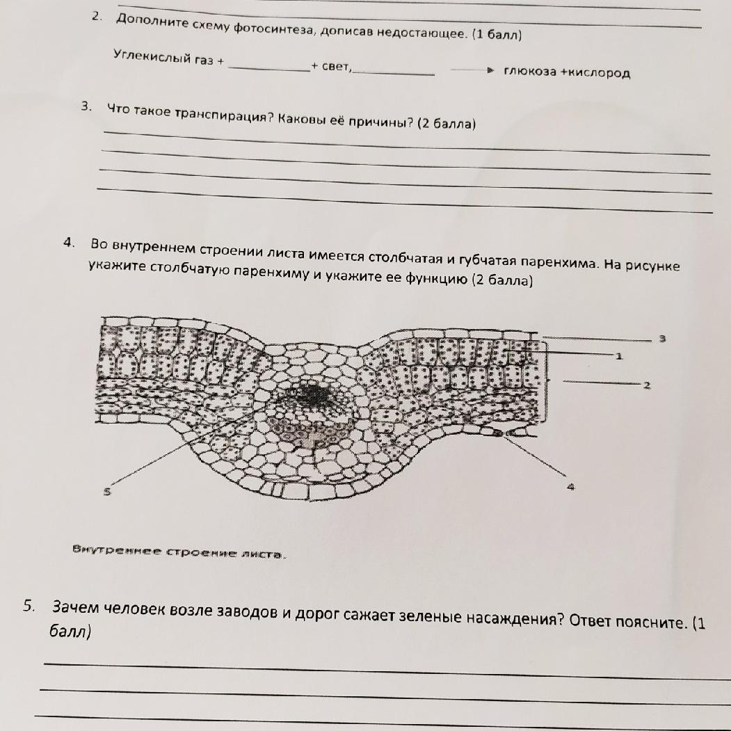 во внутреннем строении листа имеется столбчатая и губчатая паренхима на рисунке укажите столбчатую паренхиму и укажите ее функцию