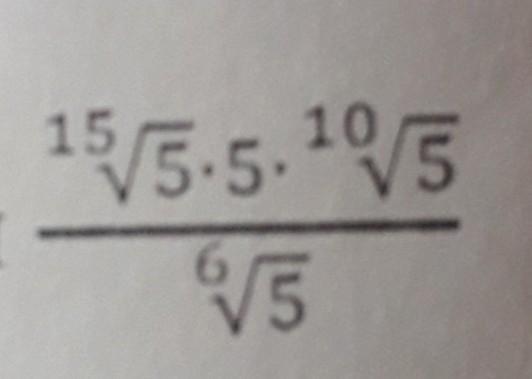 ...=5¹/¹⁵*5*5¹/¹⁰*5⁻¹/⁶=5⁽²⁺³⁻⁵⁾/³⁰*5=5⁰*5=1*5=5