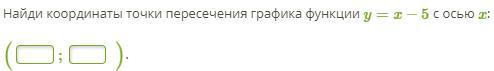 Найти координаты точки пересечения функции у=х-5 с осью Ох.