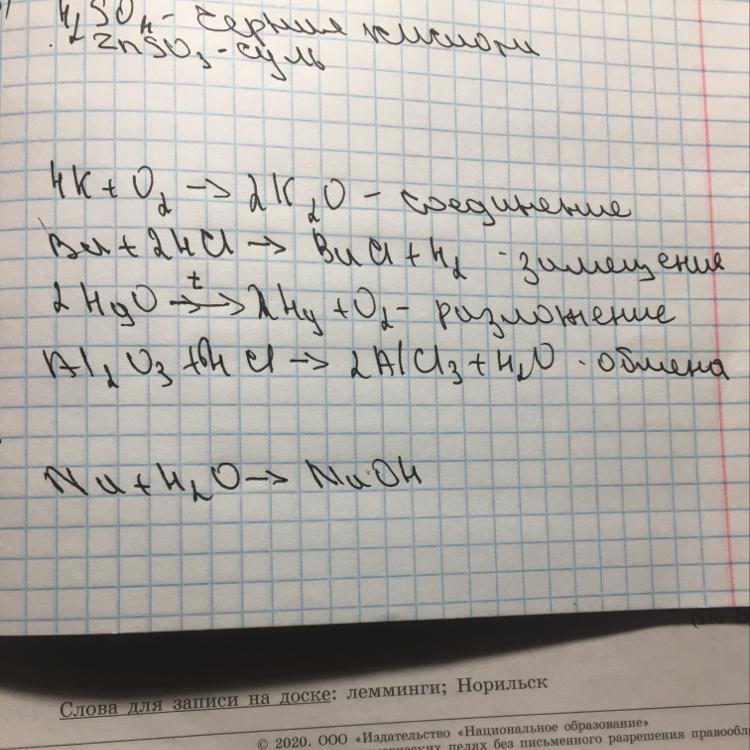 | D. Al2O3 + 6HCI - 2AlCl3 + 3H,0 определите типы реакций