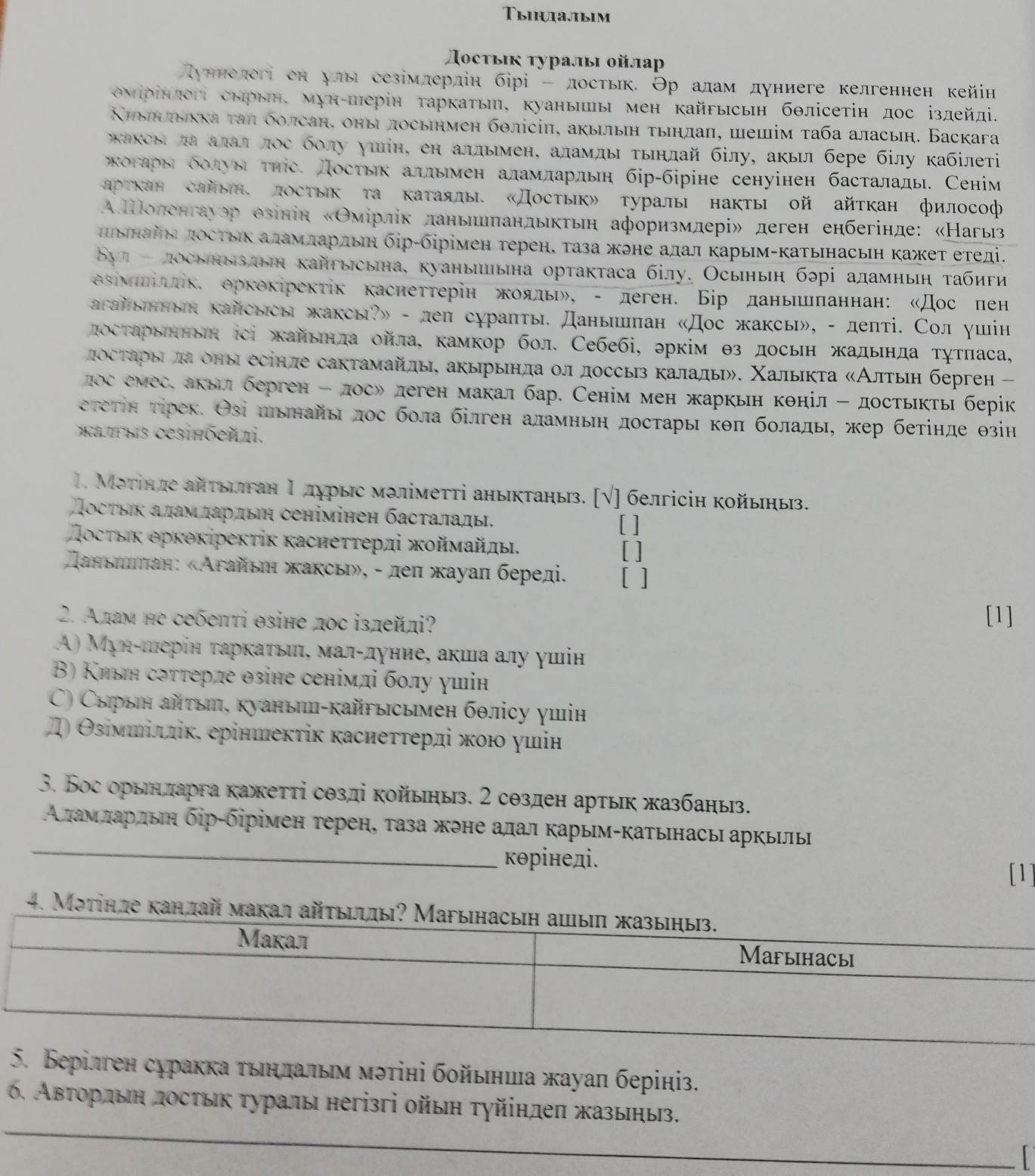 4)алтын берген дос емес, ақыл берген дос деген мақал