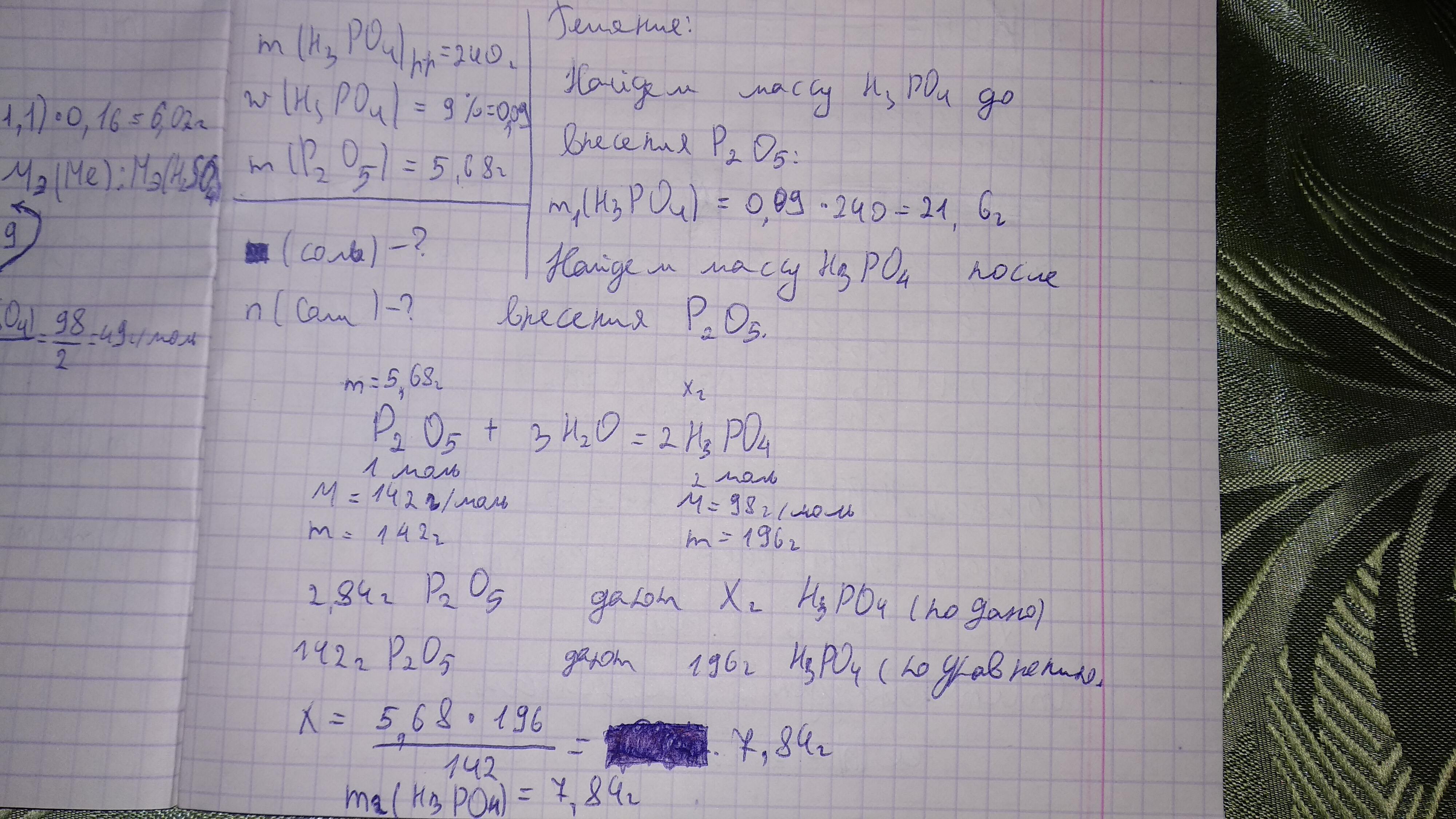 В 240 г 9% ортофосфорной кислоты растворили 5,68 г оксида фосфора (V) и полученный раствор прокипятили. Какая соль и в каком количестве образуется, если к полученному раствору добавить 84 г гидроксида калия?
