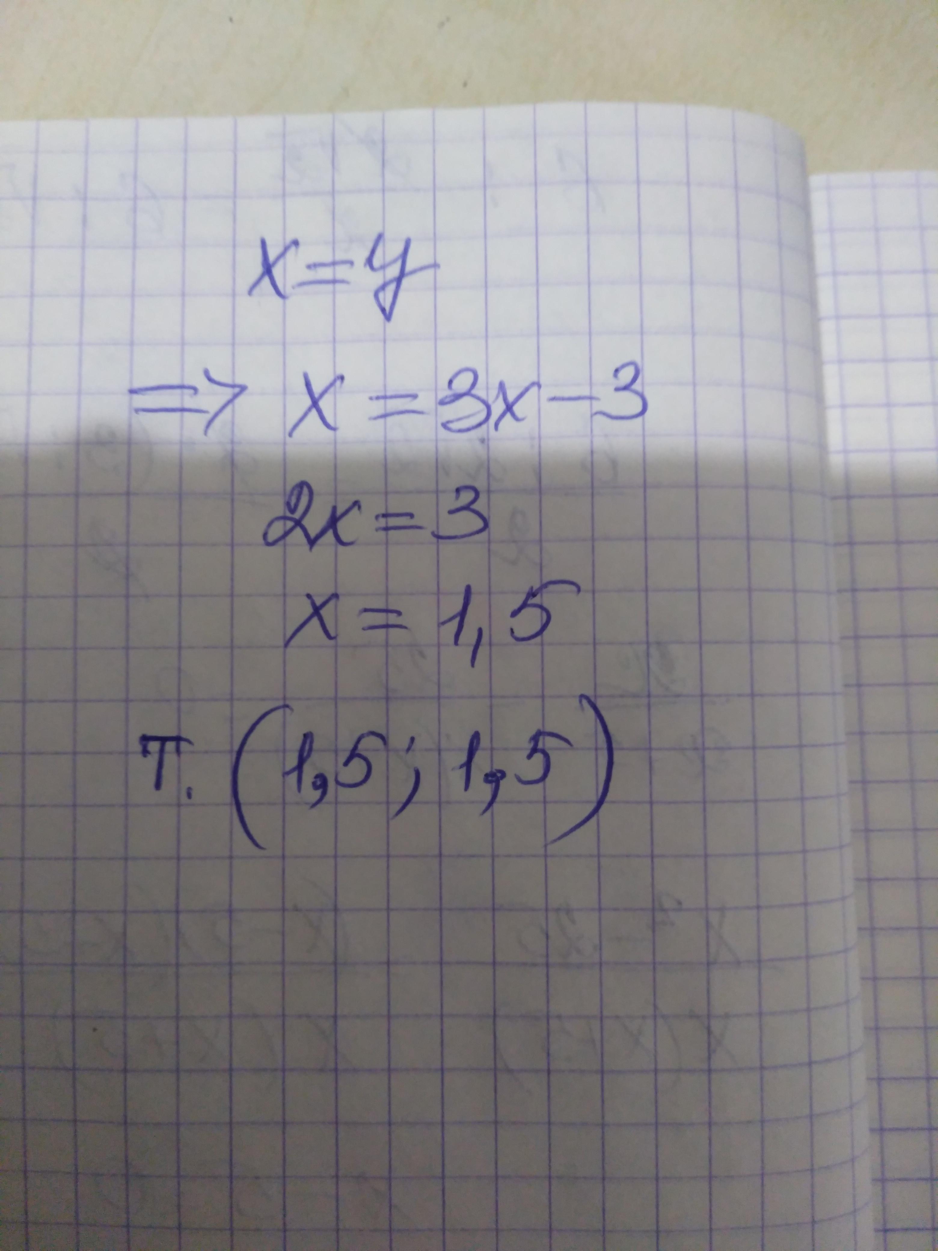 Найди точку графика линейной функции y=3x−3, абсцисса которой равна ординате.