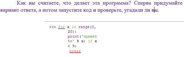 Но так как там стоит условие, меньше 9, то цикл прирвется на первой итерации