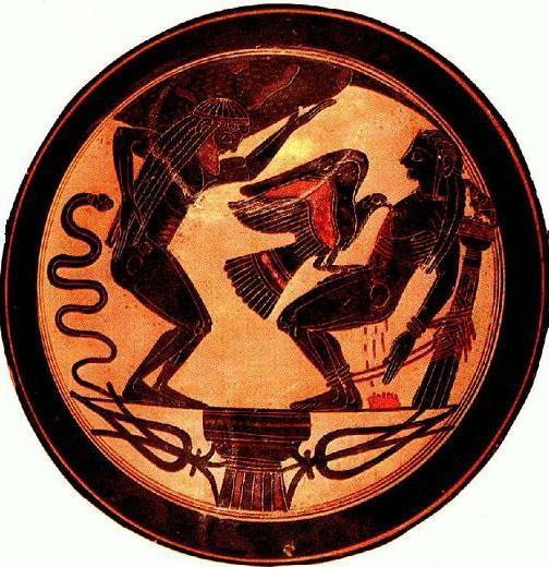 Атлант слева(держит небесный свод), Прометей справа(клюёт орёл Зевса)