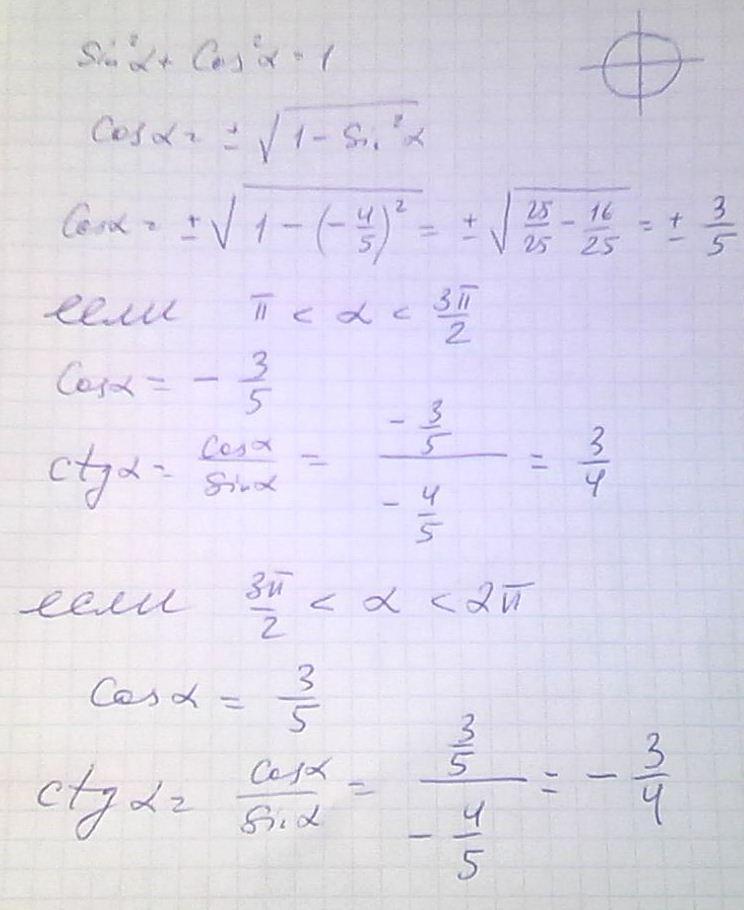 Найдите сtgα, если sinα = -4/5 ,П даю 70 баллов