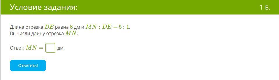 ЯКласс! Длина отрезка DE равна 8 дм и MN:DE= 5 :1.