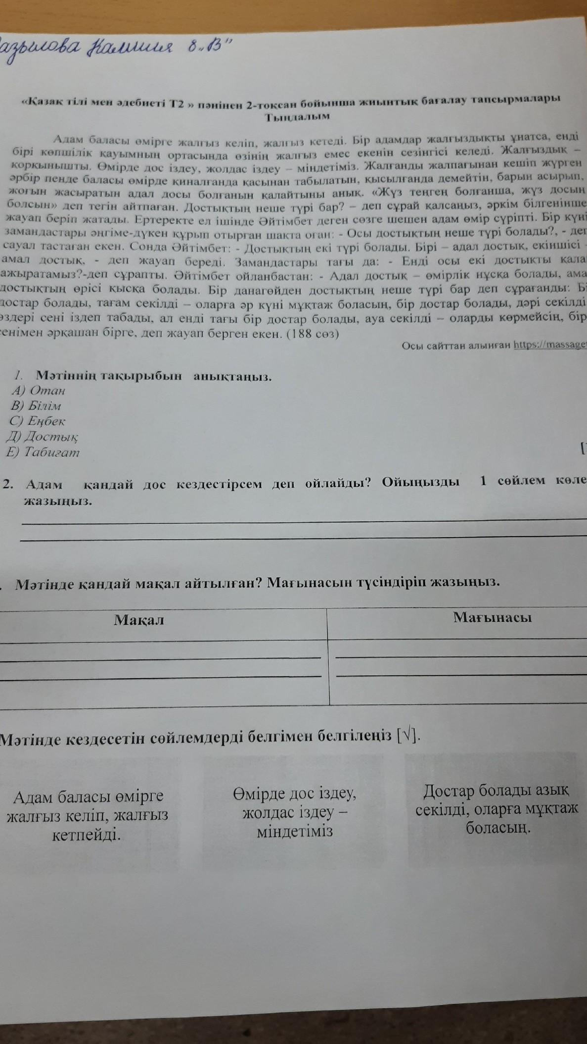2. Адам өз өмірінде үнемі адал дос іздейді, өйткені тек адал дос қана оны ешқашан қиындықта қалдыр айды.