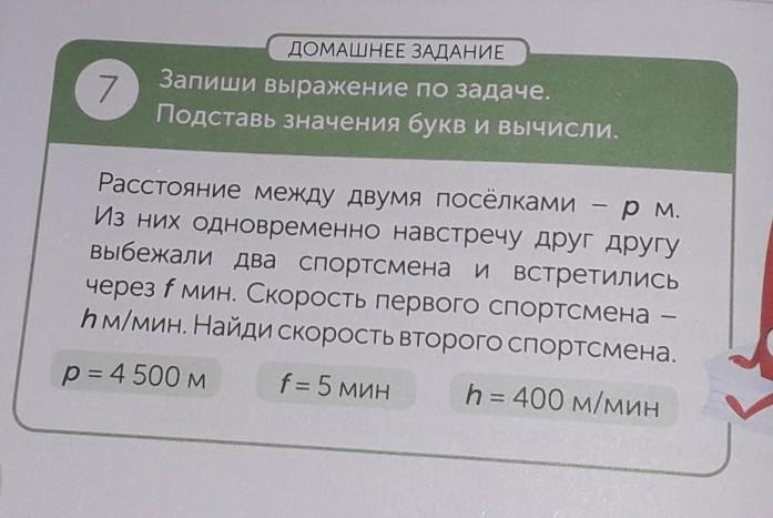 Когда два тела движутся к друг другу навстречу(в нашем случае спортсмены) их скорости складываются,а скорость второго неизвестна. Обозначим скорость второго спортсмена за x.