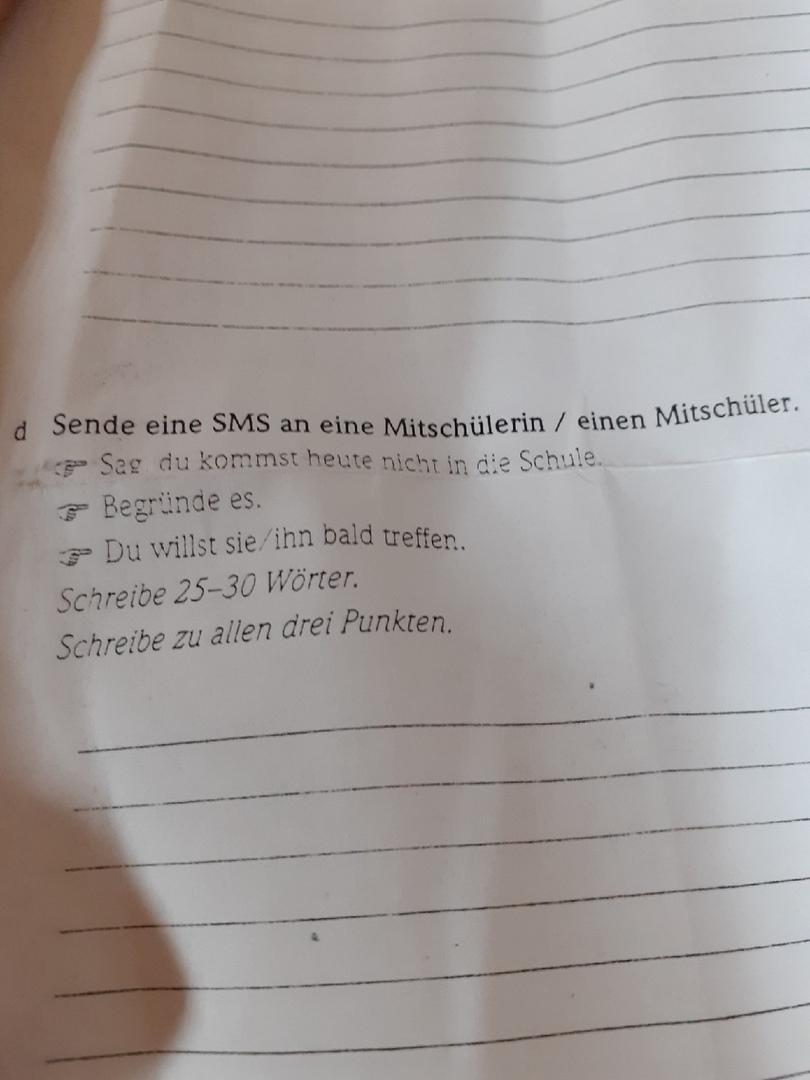 Помогите с немецким(с смс) пожалуйста)на фото все написано(если что нужно 25-30 слов. Даю 35 баллов)