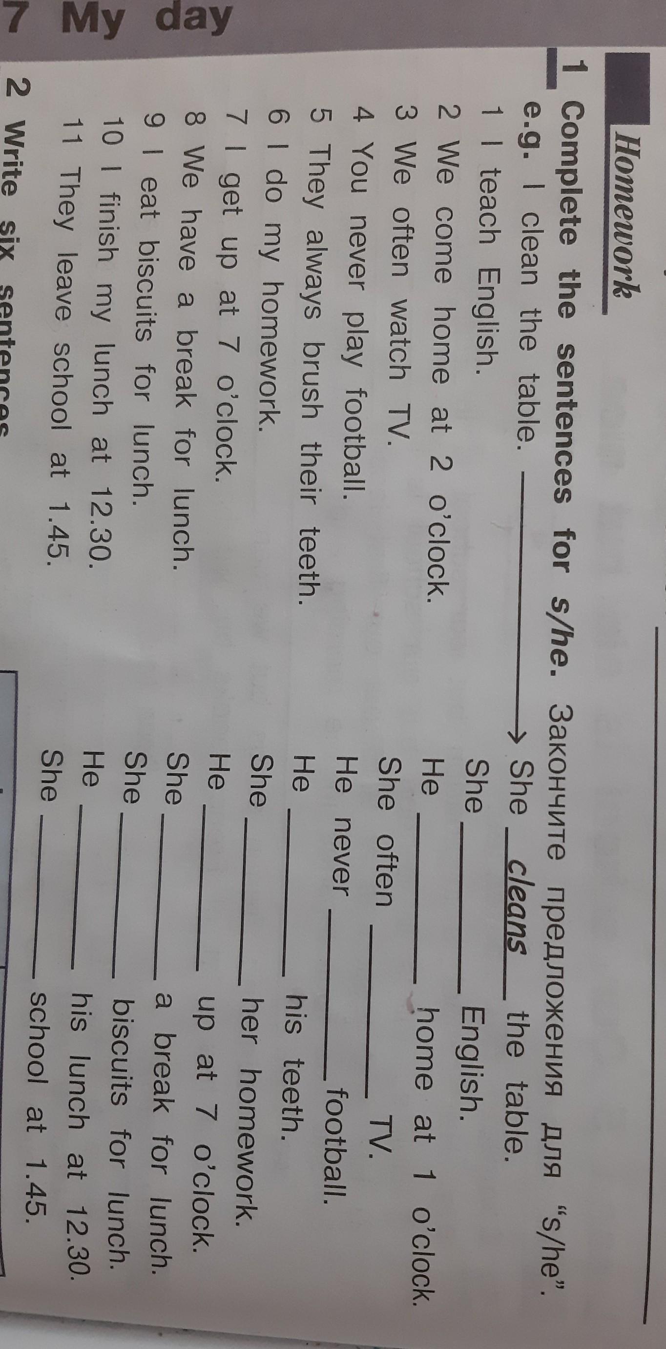 1 teaches 2 comes 3 watches 4 play 5 brushes 6 does 7 gets 8 has 9 eats 10 finishes 11 leaves