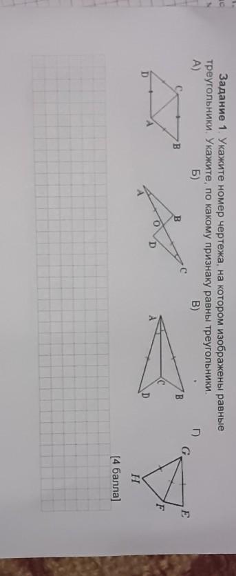 УКАЖИТЕ НОМЕР ЧЕРТЕЖА, НА КОТОРОМ ИЗОБРАЖЕНЫ РАВНЫЕ ТРЕУГОЛЬНИКИ. УКАЖИТЕ ПО КАКОМУ ПРИЗНАКУ РАВНЫ ТРЕУГОЛЬНИКИ
