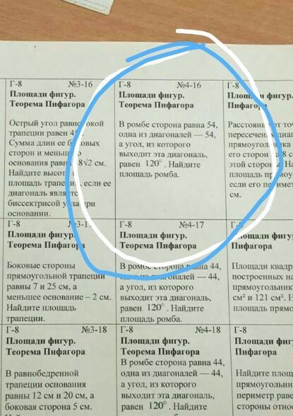 Следовательно один из катетов треугольника внутри ромба = половине гипотенузы, по условию мы сразу можем это вычислить: 54:2=27см