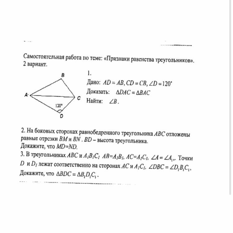 доказательство DAC=BAC потому что стороны AD=AB и CD=CB