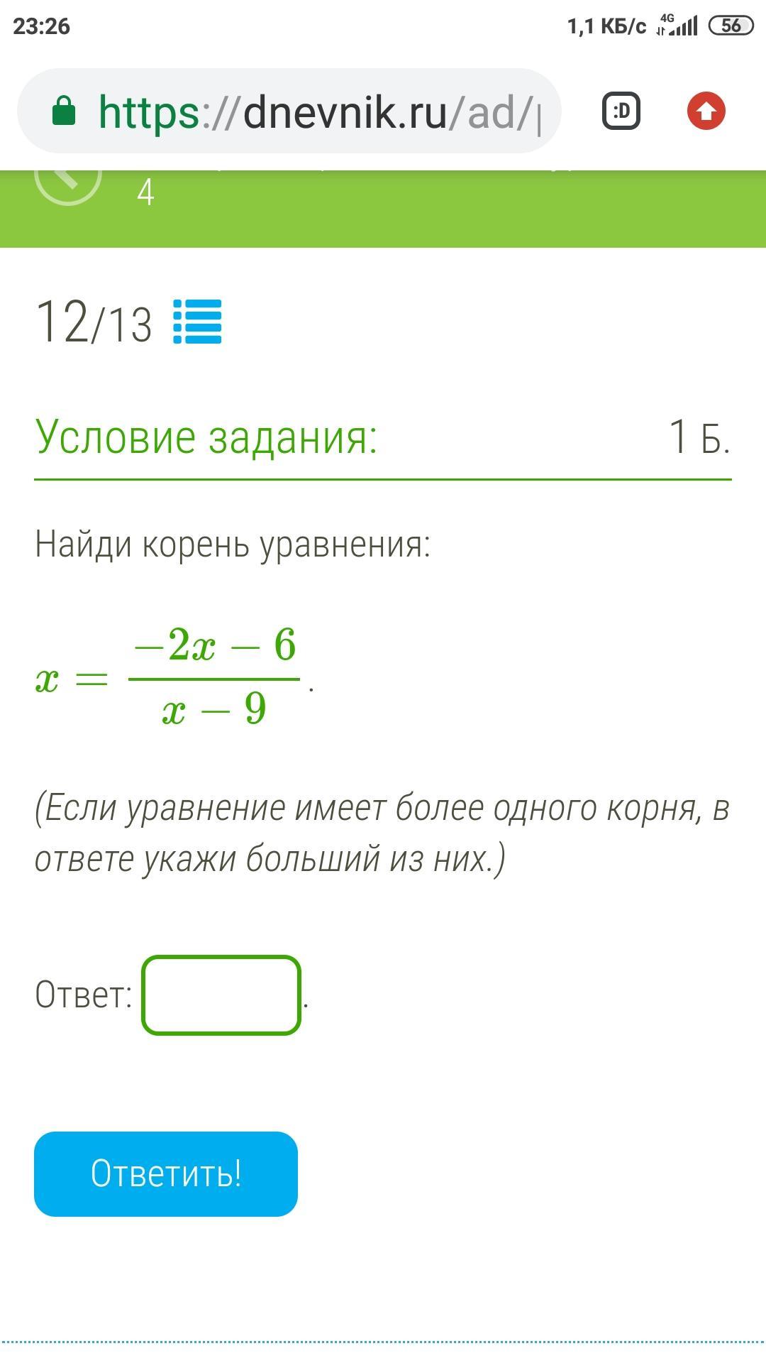 Если ответ имее более одного корня, в ответ указать больший из них.