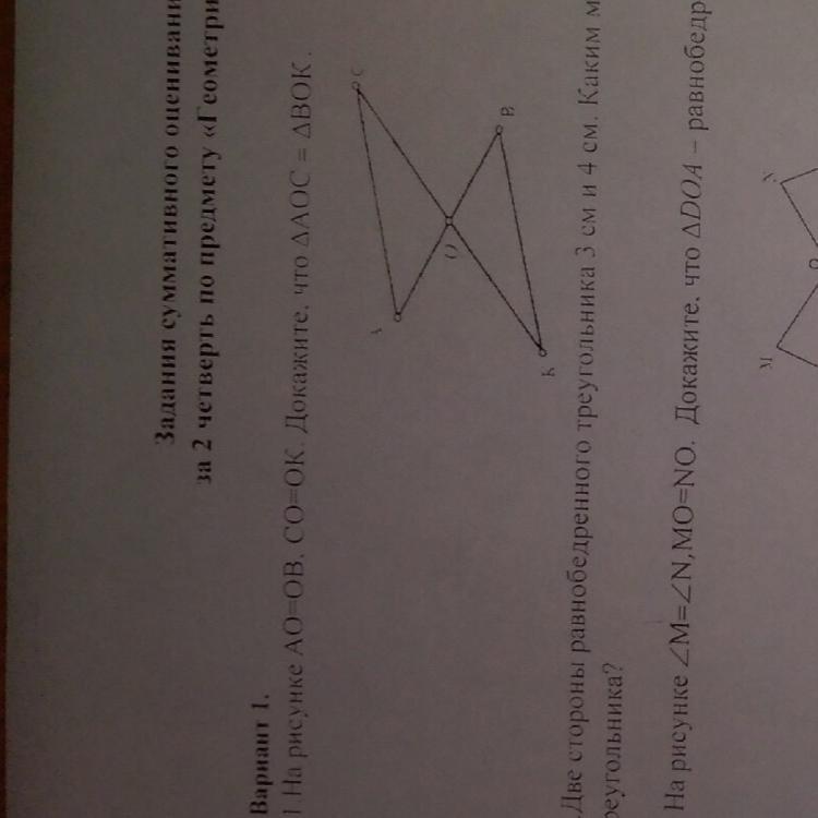 Следовательно ΔAOC=ΔKOB (по 1-ому признаку равенства треугольников)