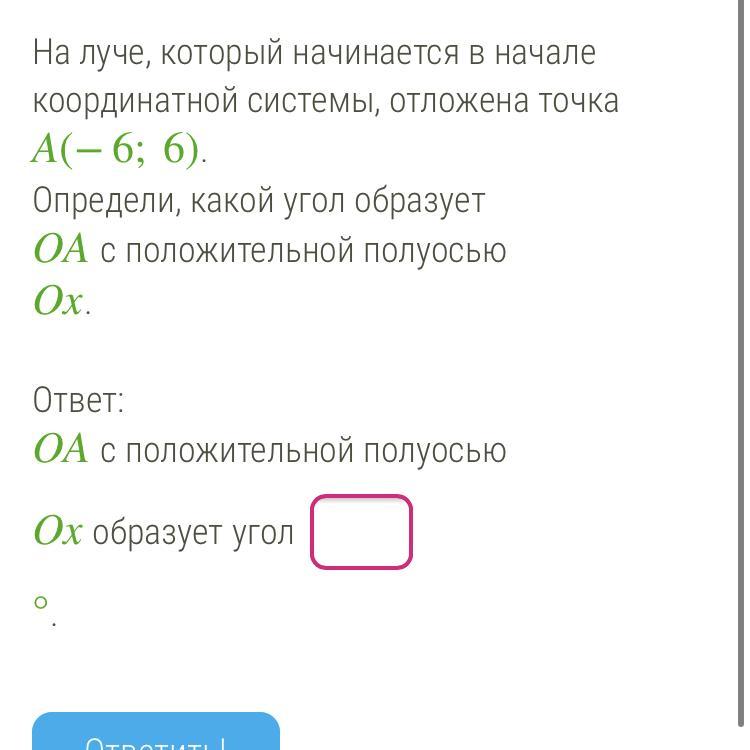 построим точк А (-6;6) и соединим А и О, <АОХ=45+90=135