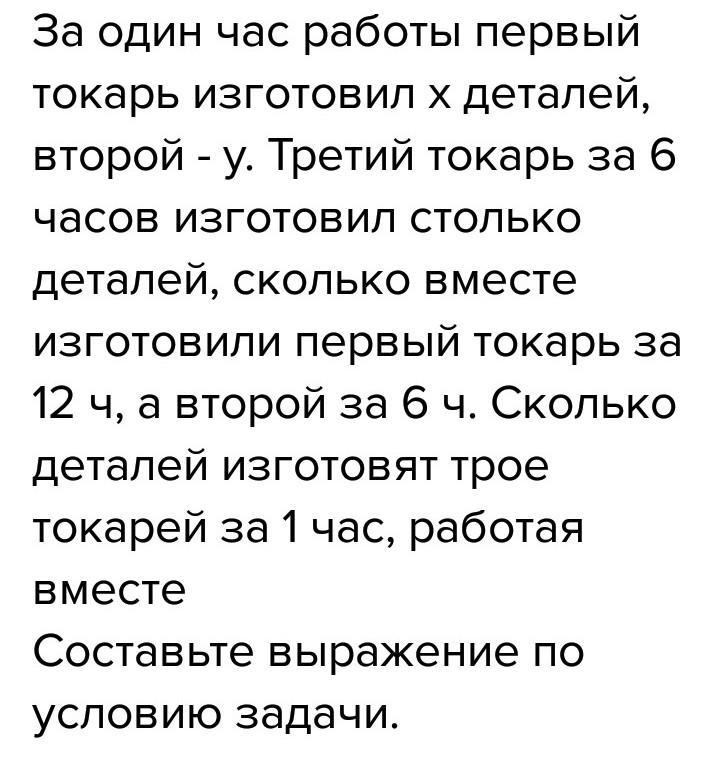 Третий токарь - (12х + 6у) : 6 = 2х + у деталей в час