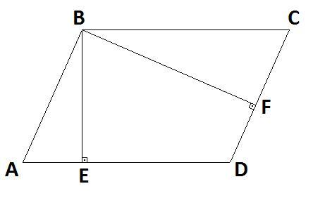 Рассмотрим треугольники ABE и BCF. Углы A и C равны, т.к. ABCD - параллелограмм. Оба треугольника прямоугольные, т.к. BE и BF - высоты. Значит треугольники подобны по первому признаку.