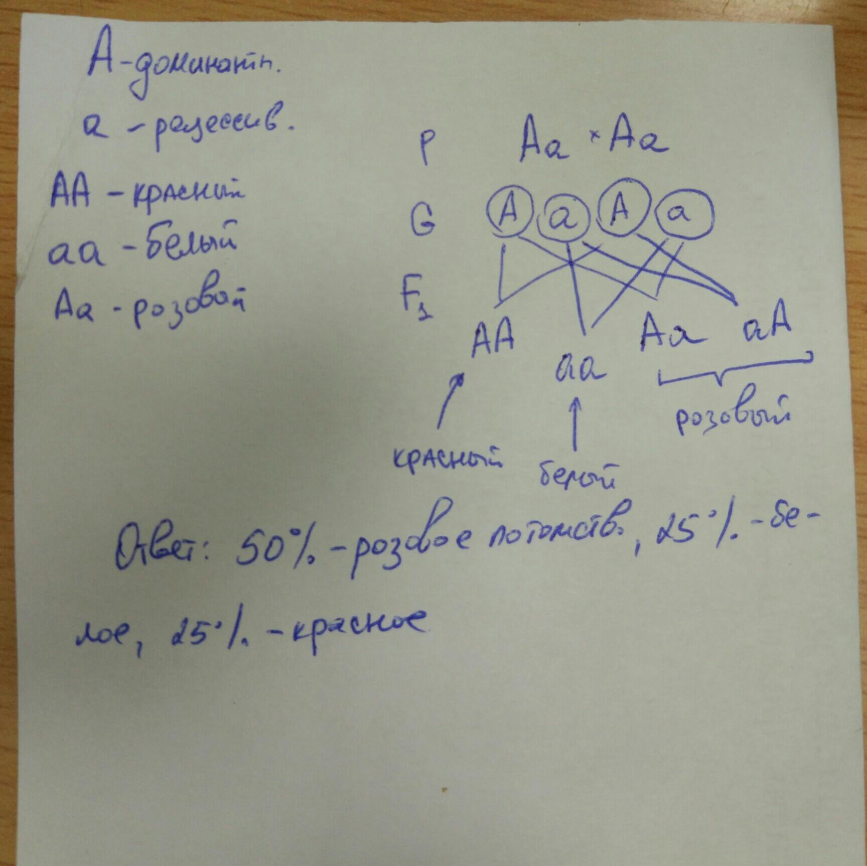 У ночной красавицы красная окраска цветков не полностью доминирует над белой. Гетерозиготы имеют розовые цветки. Какое потомство следует ожидать от скрещивания растений с розовыми цветками. Составьте схему наследования. ПОДРОБНО РАСПИШИТЕ