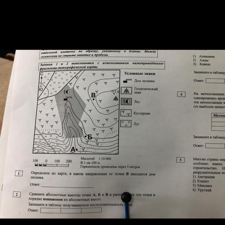 2) В Б А