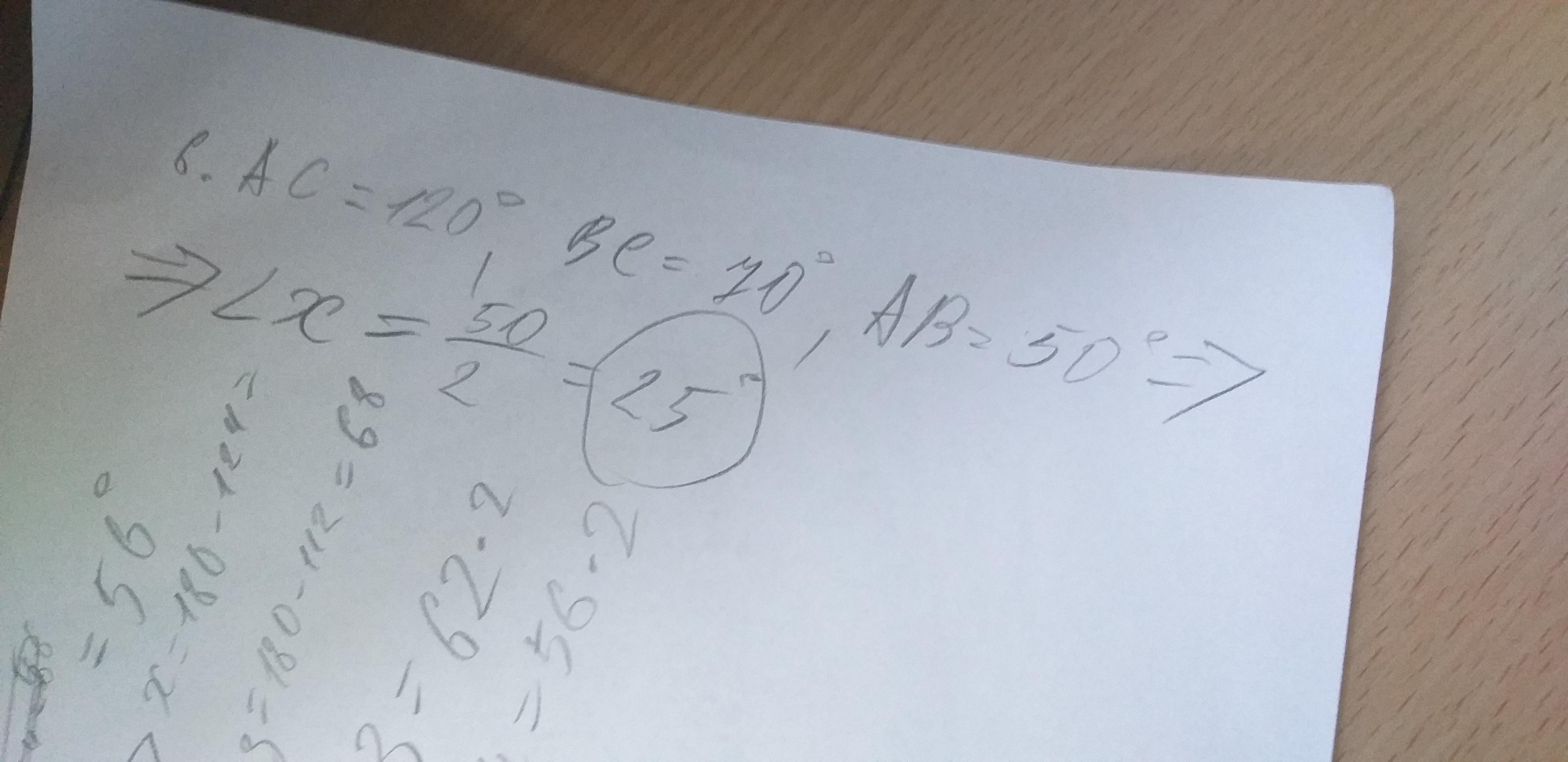 3. Кут при вершині рівнобедреного трикутника дорівнює 56°. На бічній стороні трикутника як на діаметрі побудовано півколо, яке інші сторони трикутника ділить на 3 дуги. Знайдіть градусні міри утворених дуг.