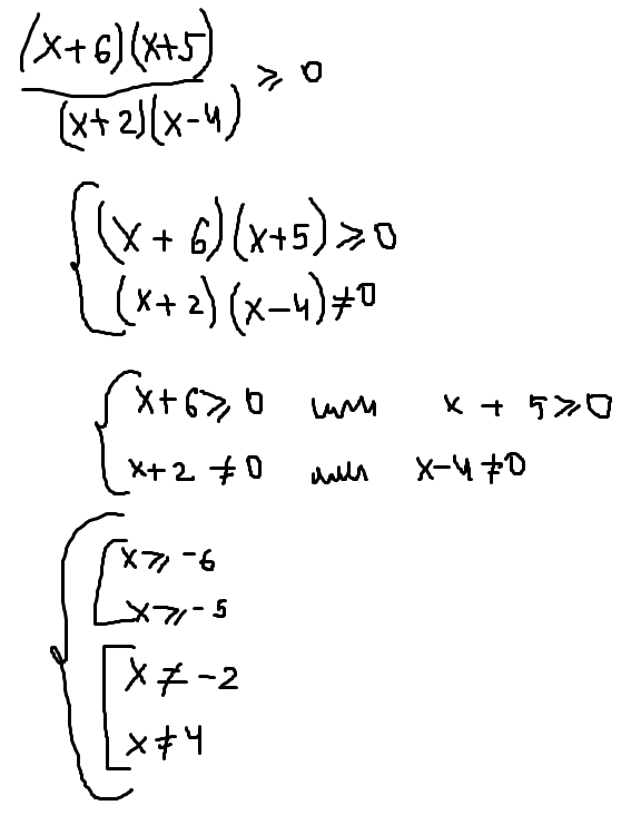 Б)(х+6)(х-5)/(х+2)(х-4) больше либо равно 0