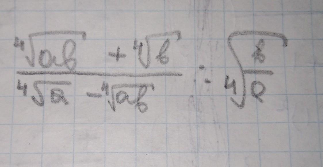 (⁴√ab + ⁴√b)/(⁴√a - ⁴√ab) : ⁴√(b/a) = ⁴√b(⁴√a + 1)/⁴√a(1 - ⁴√b) * ⁴√a/⁴√b) = (⁴√a + 1)/(1 - ⁴√b)