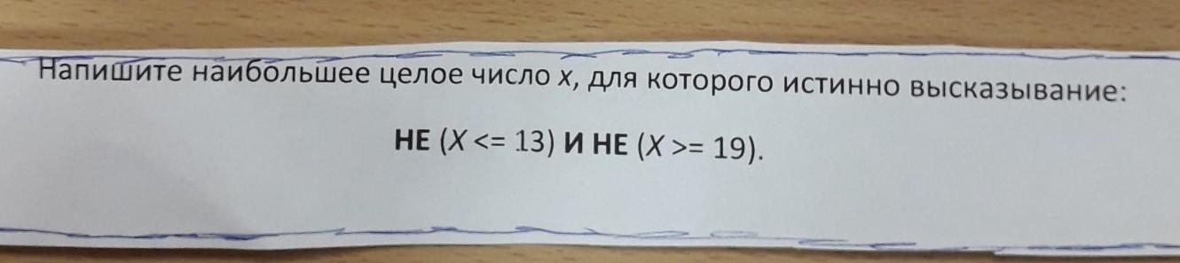 НЕ(X<=13) И НЕ(X>=19) = X>13 И X<19