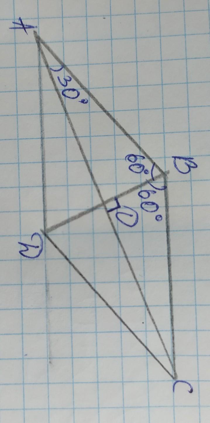 2. Т.к. АВСD- ромб, то угол ВОА=90°, угол АВО=60°, а угол ВАО=30°