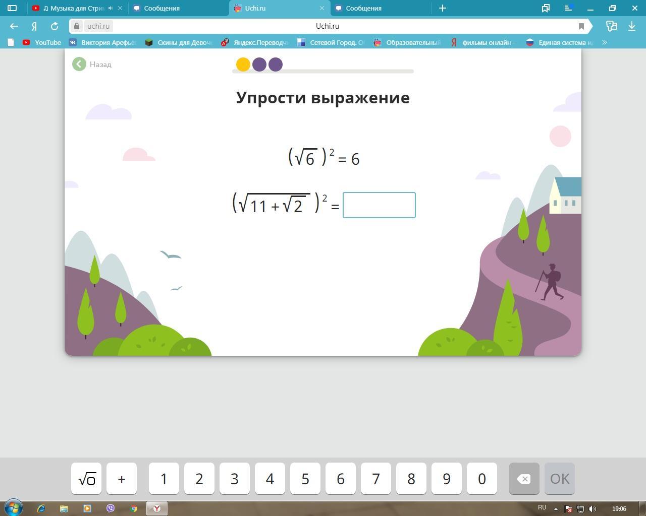 = 11 + корень из под 2 (т.к. При возведение в степень корень изчезает)