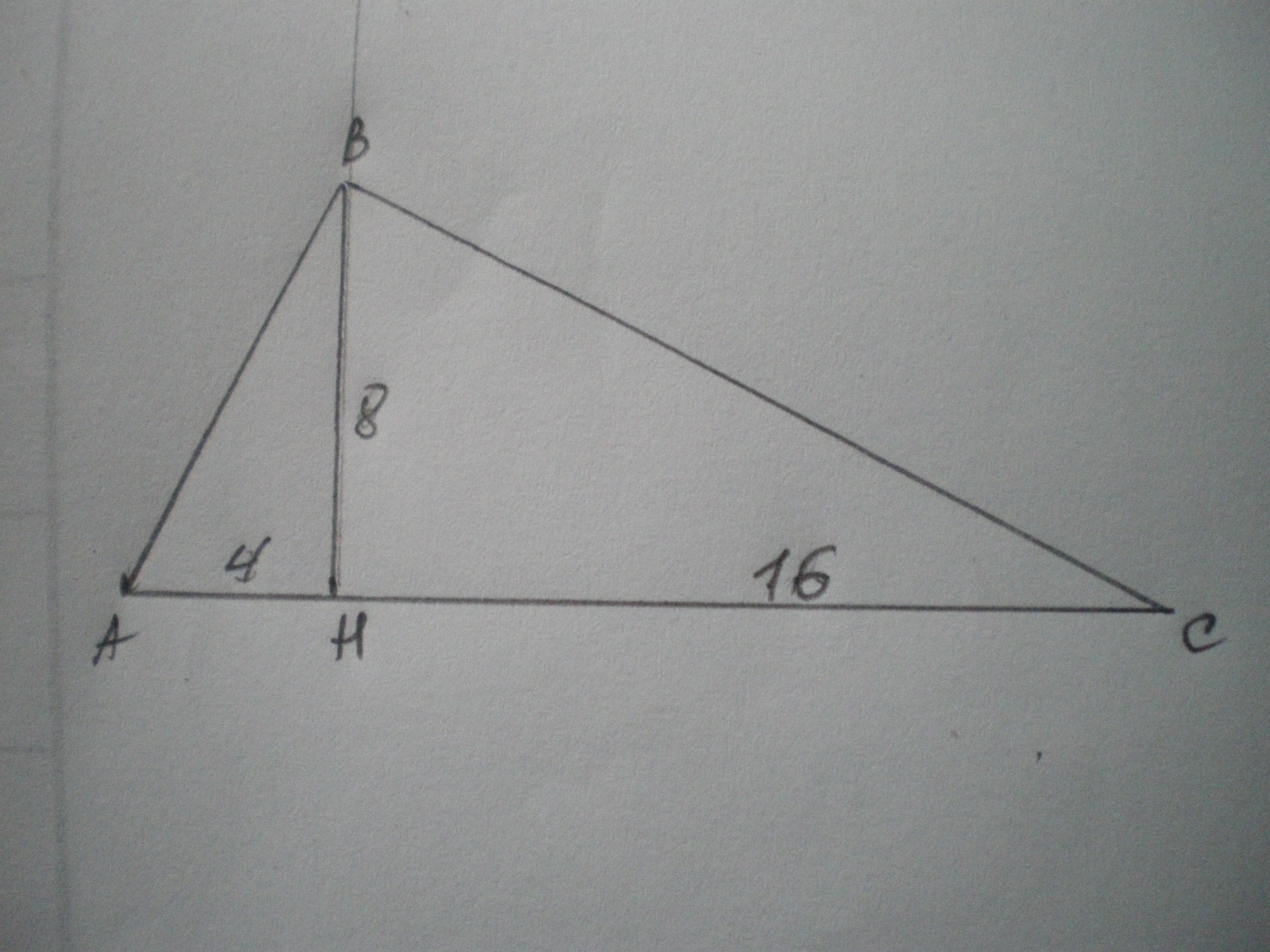 Дано: ΔАВС - прямоугольный, ВН - высота, АН=4 см, СН=16 см. Найти АС, АВ и ВС.