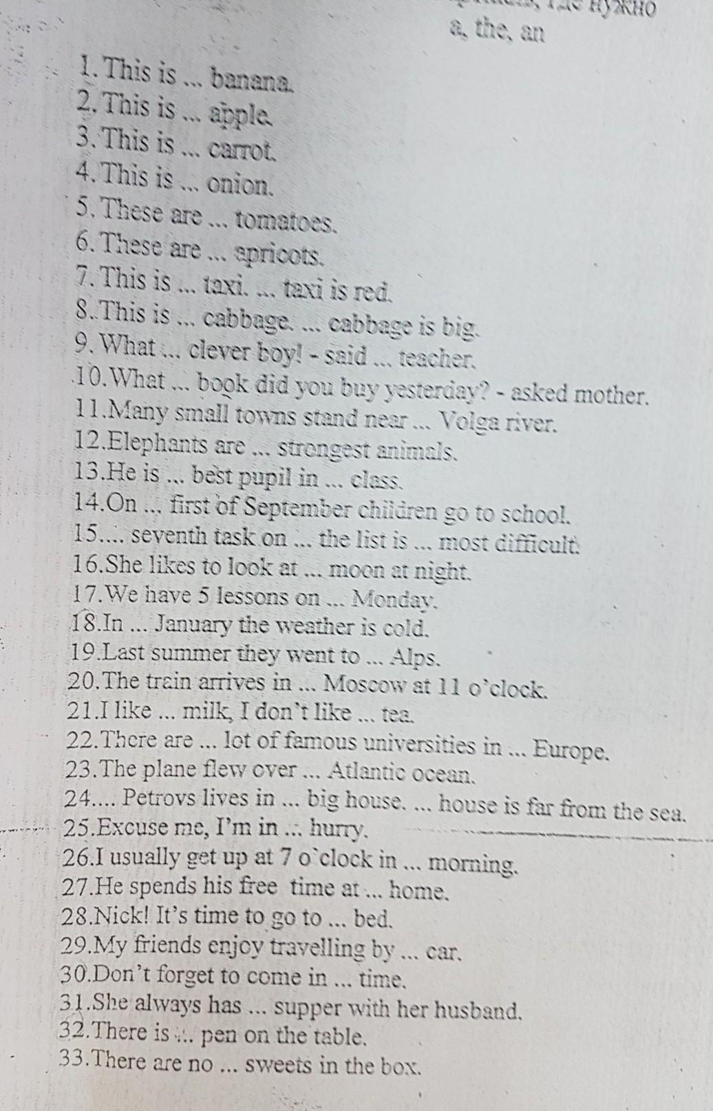 вставьте где надо a, the, an