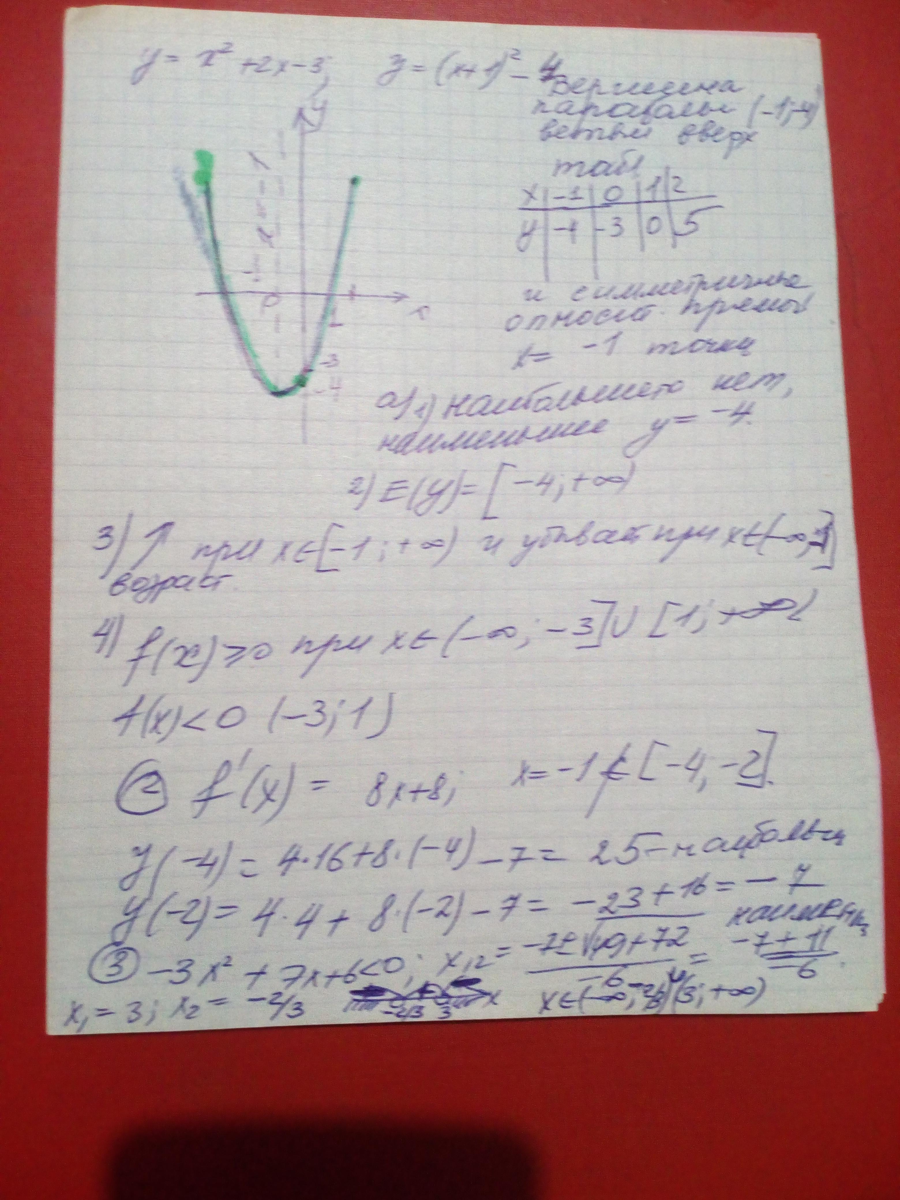 2.Найдите наименьшее значение функции у=4x^2+8x-7 на промежутке [-4;-2]