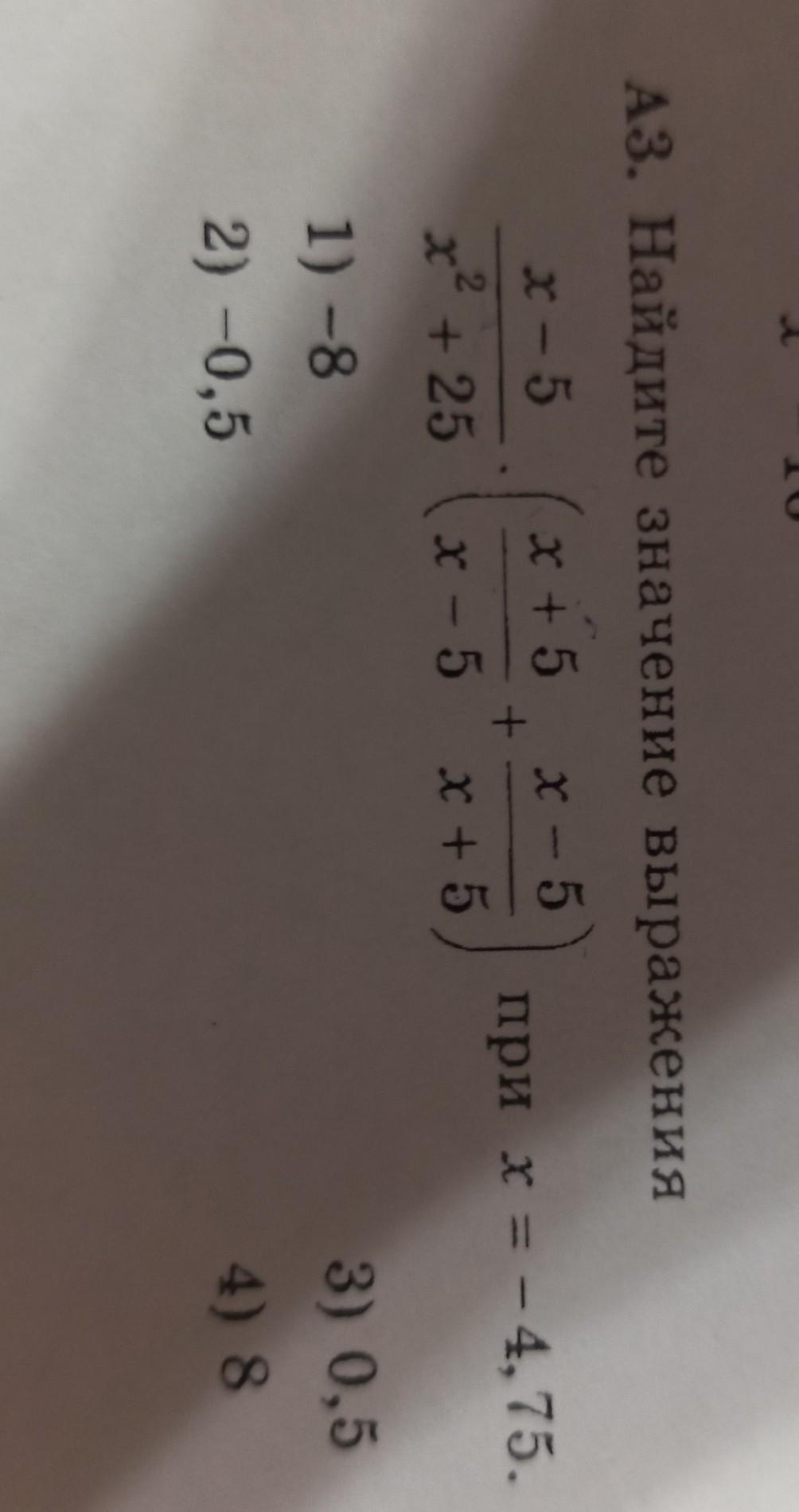 =2*(x-5)*(x²+25)/((x²+25)((x+5)(x-5))=2/(x+5)=2/(-4,75+5)=2/0,25=8.