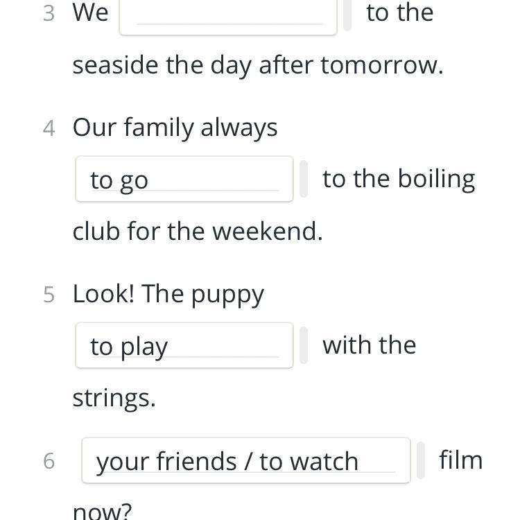 Само задание звучит так Complete the sentences with the correct forms of the verbs. Use Present Continuous, Present Simple or Future Simple.