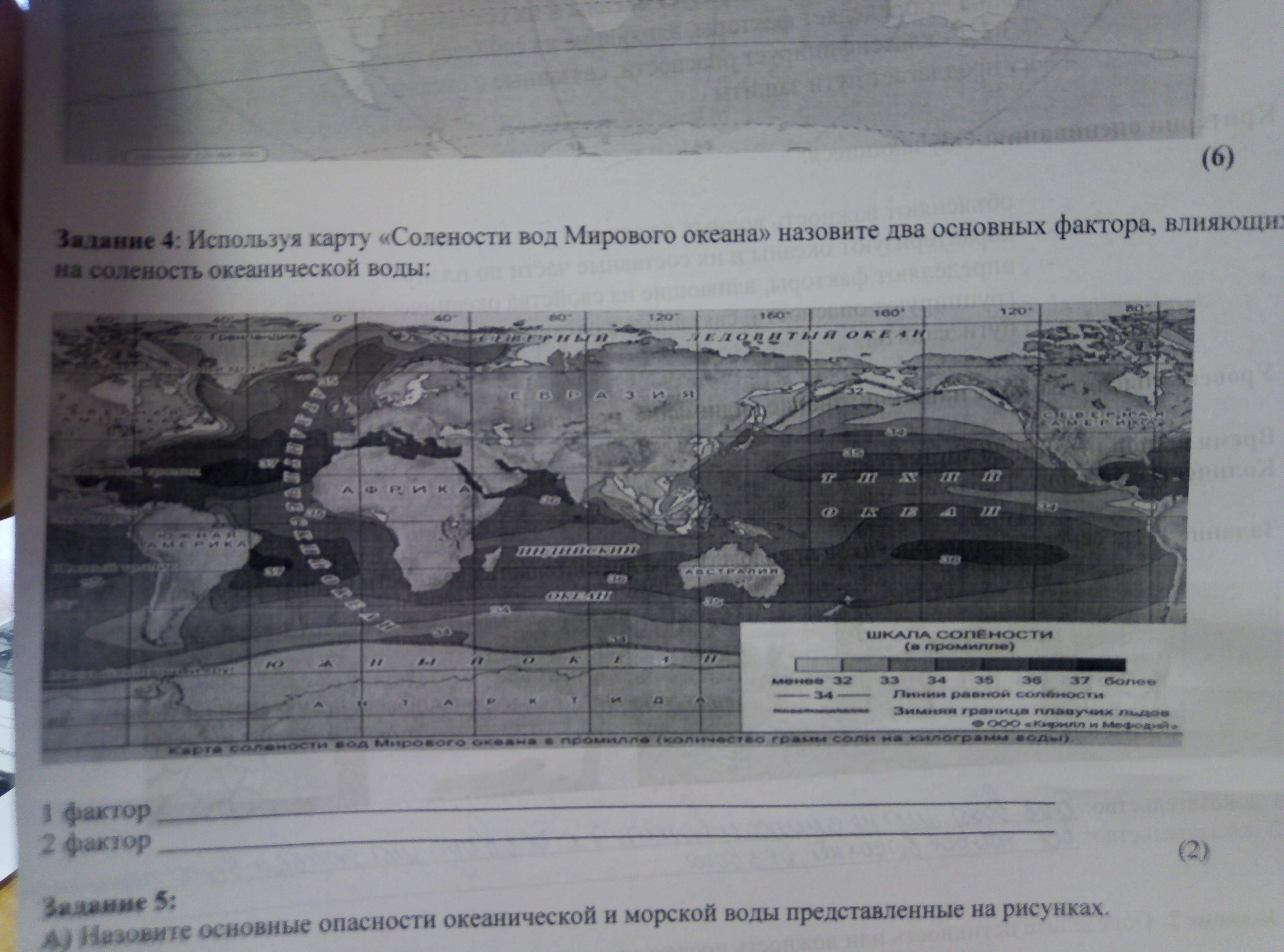 Используя карту солености мирового океана назовите два основных фактора влияющих на солености океанической воды