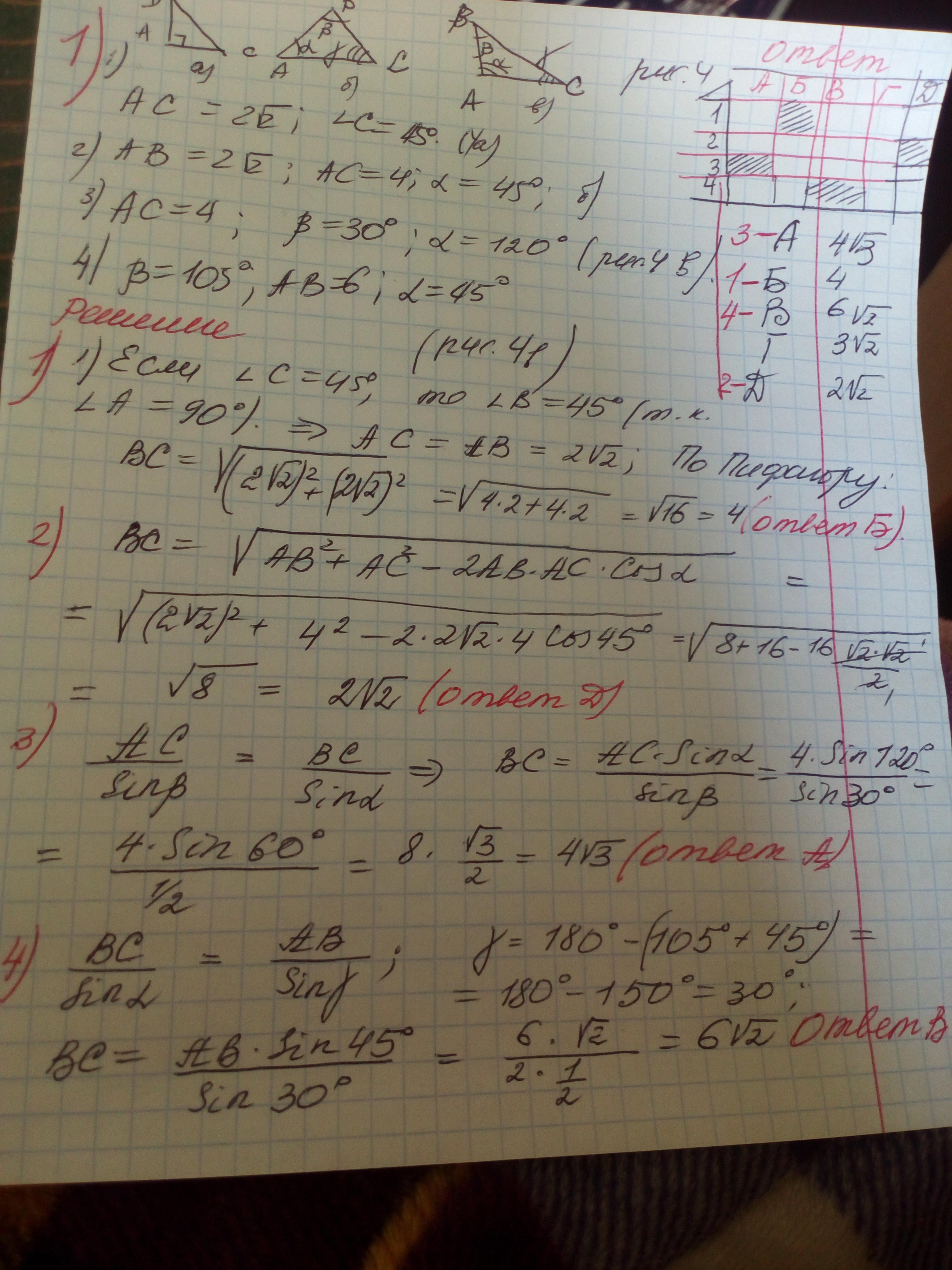 6. Установите соответствия между элементами треугольника ABC длиной стороны BC