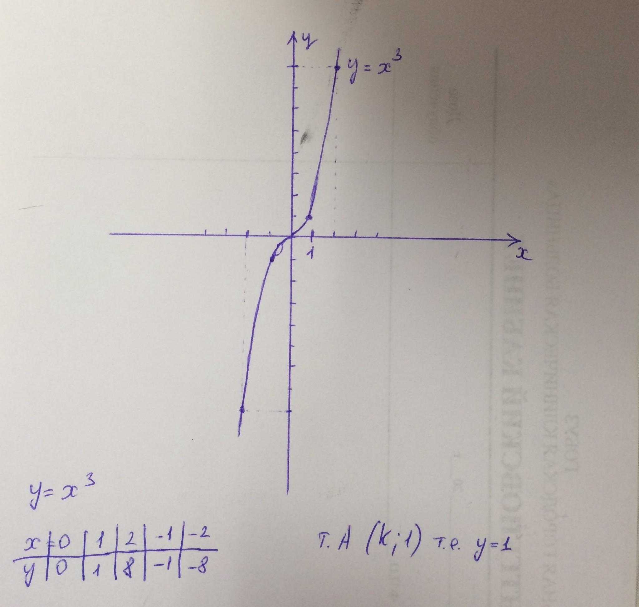 Постройте график функции у=х3. Найдите все значения К, при которых точка А(К;1) принадлежит данному графику