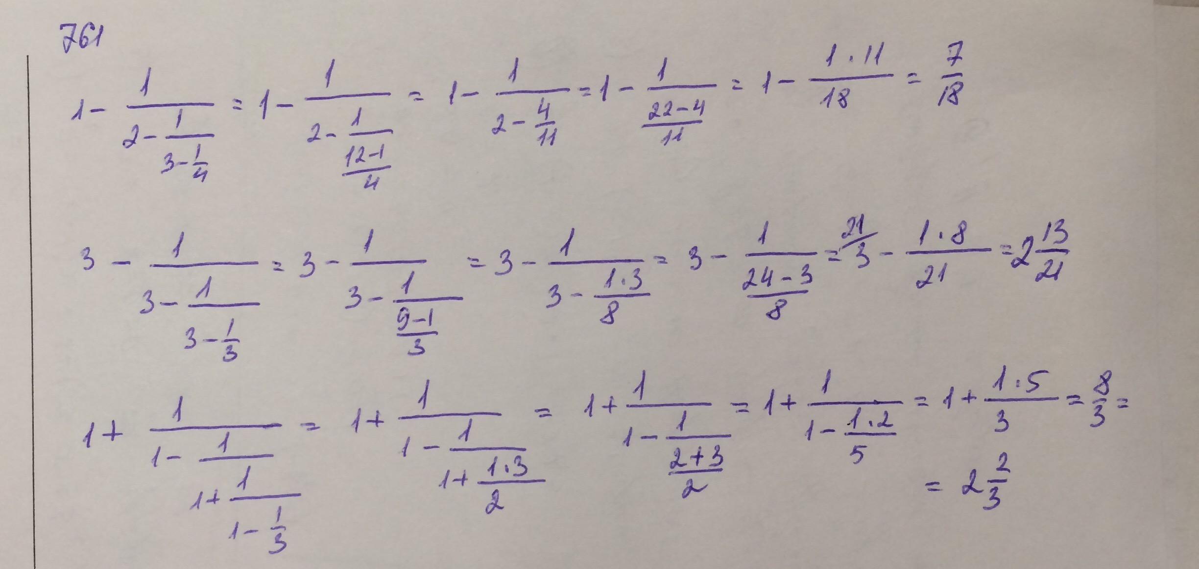 761) 1) =7/18 ; 2) =2 13/21 ; 3) =2 2/3