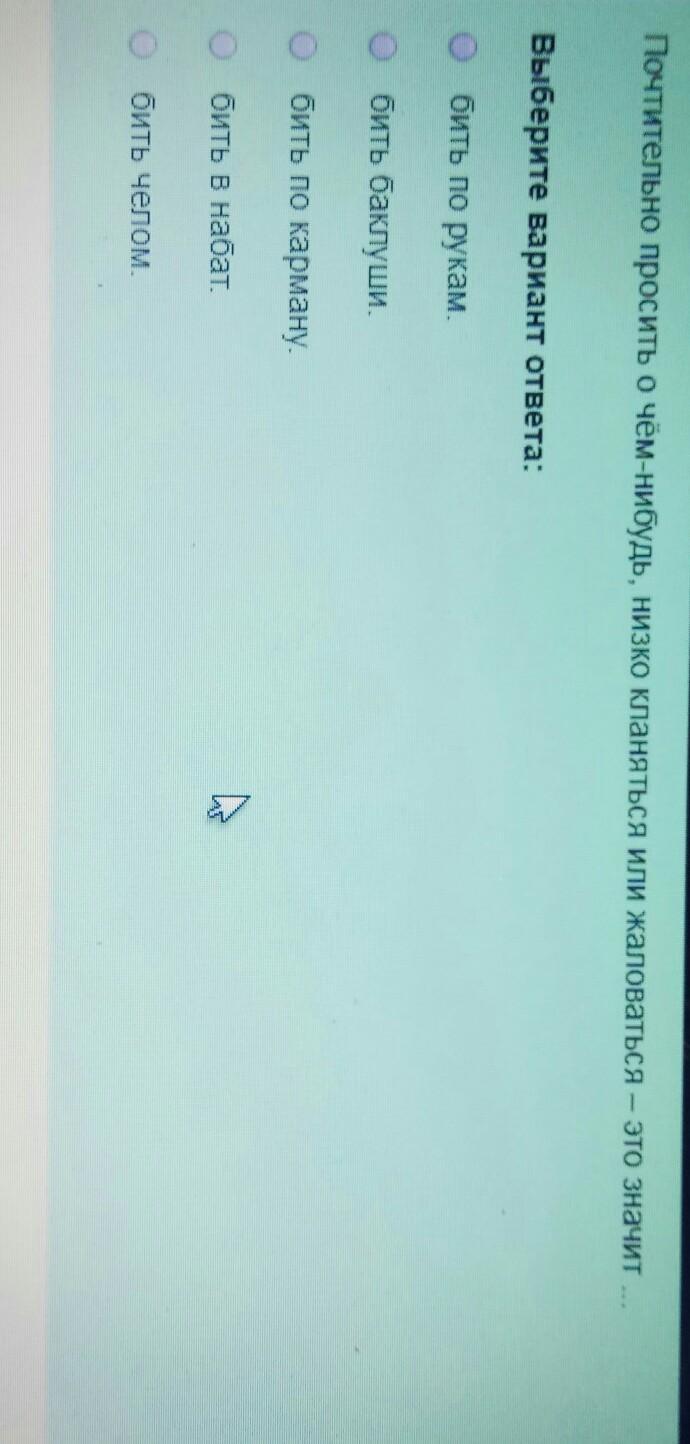 бить челом — I. (иноск.) кланяться, просить Челобитная просьба с низким до земли поклоном (по обычаю бояр, при подаче просьбы царю, кланяясь до полу, бить о него лбом) Ср. Бьют челом тебе, великому царю.