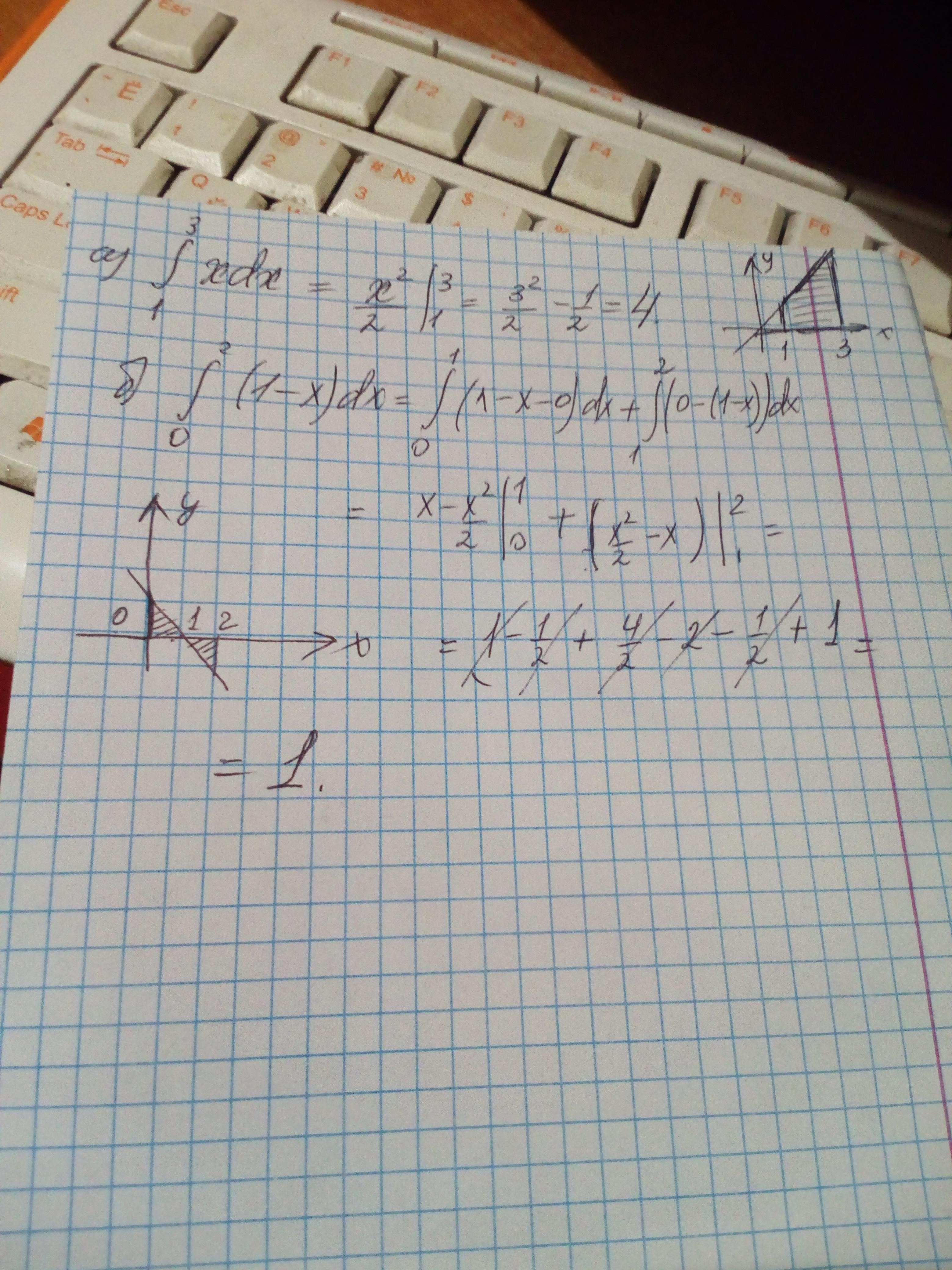а)∫₁³xdx; б)∫²₀(1-x)dx