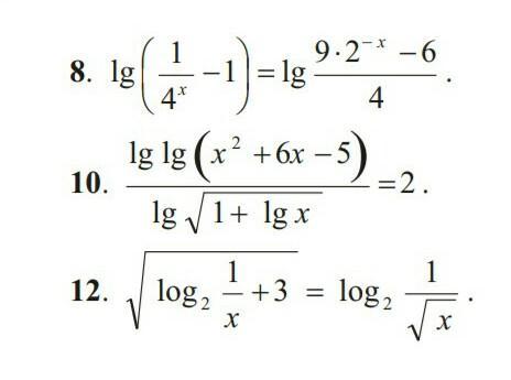 Решения проверены, ответы верные. В 10 номере есть опечатка, которая никак не влияет на отличное решение. В проверке в знаменателе потерян знак логарифма : вместо ...1/2*(1+lg5)... должно быть ...1/2*lg(1+lg5)...