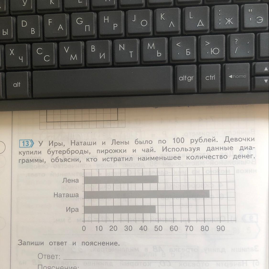 Думаю, тут пояснять нечего, смотрим на диаграмму и понимаем, что Ира истратила меньше всех денег, что именно нужно пояснить?