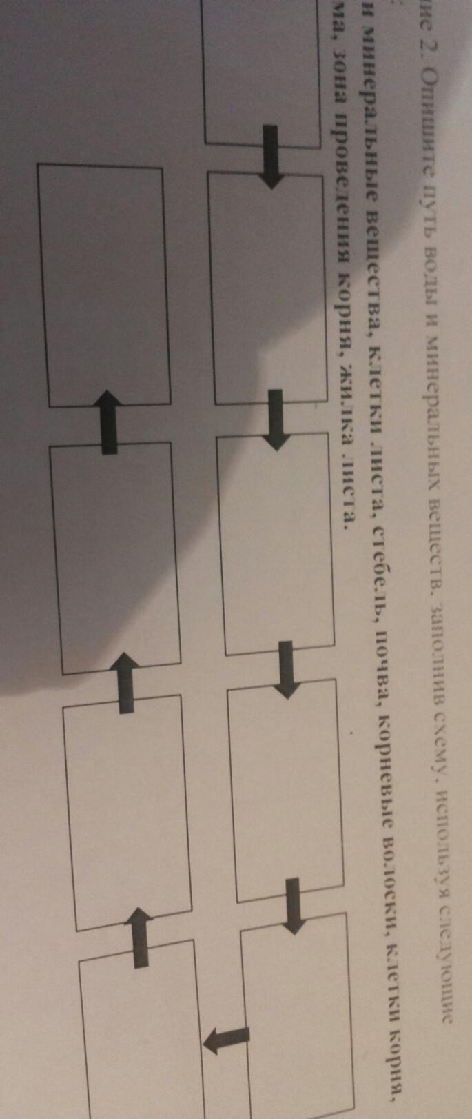 Почва–зона проведения корня–корн.волоски–клетки корня–стебель–жилки листа–клетки листа.