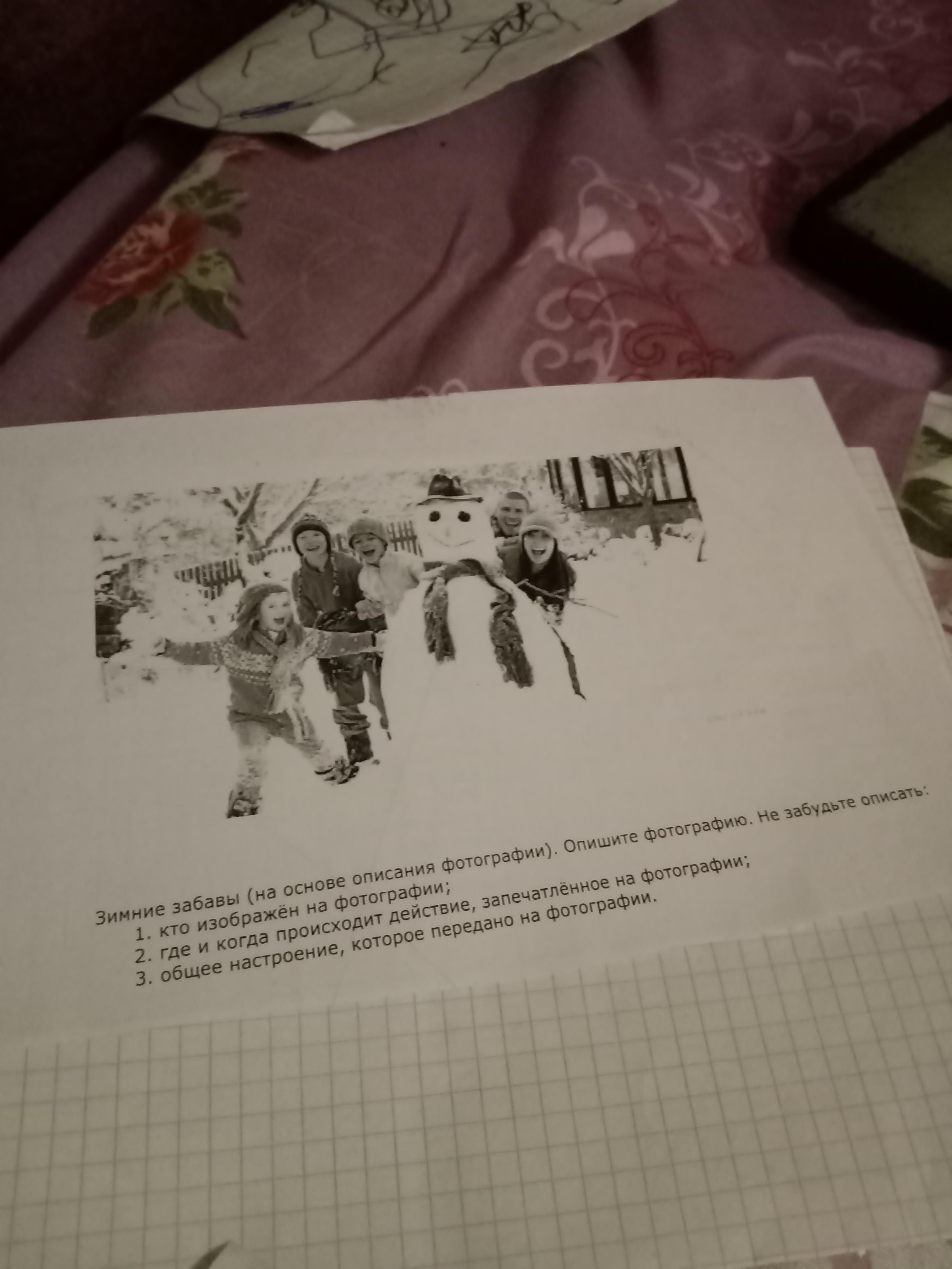 Зима - лучший повод для игр с друзьями (как и все другие) На фотографии изображены полноценная семья, как мы видим они все вместе построили снеговика. Это одно из весёлых, любимых игр детей с родителями. На фотографии все радостные, через фотографию можно ощутить как на эмоциях это происходит.