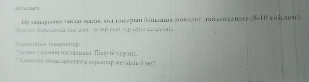 Проанализируйте одну тему и подготовьте монолог по одной из тем (8-10 предл).